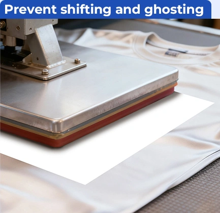 A:It's particularly suitable for lycra, spandex, polyester blends, stretchy activewear, swimwear, yoga wear, and other fabrics that tend to shift during the heat press process.